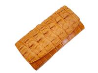 Одна из востребованных моделей трехскладного женского кошелька из крокодиловой кожи. Для изготовления кошельков данной модели используется кожа сиамского крокодила фактурная спинная часть. Используемая кожа высокого качества выделки и окраса, кожа мягка и эластичная. Вы получите незабываемые приятные тактильные ощущения от прикосновения к фактурной кожи рептилии. Данное изделие выполнено из одного цельного куска спинной части кожи крокодила, что повышает его стоимость. На лицевом клапане кошелька расположены неповторимые по фактуре и природному рисунку остеодермы кожи сиамского крокодила. Обратная часть кошелька не имеет ярко выраженной фактуры, она более гладкая.