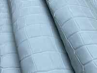 Кожа сиамского крокодила брюхо краст крокодиловая кожа шкурами ширина 34см, неокрашенная крокодиловая кожа- краст. Фото шкур крокодиловой кожи представлены справочно, рисунок кожи, оттенок и размеры необходимо уточнять перед покупкой. Брюшная часть сиамского крокодила, кожа высокого качества выделки, кожа мягкая и эластичная, краст белоснежного цвета. Крокодиловая кожа подготовлена для дальнейшего окрашивания в любые, даже в самые светлые оттенки. Такая кожа будет востребована теми мастерами кто помимо индивидуального пошива практикует и индивидуальное окрашивание, патинаж и прочие техники. Если вы ищите крокодиловую кожу под пару обуви, свяжитесь с нами, и мы подберем для вас подходящую кожу. Также если вы находитесь в поиске одежной кожи крокодила, дайте нам знать, и мы подберем кожу для вашего проекта. На нашли то, что искали? Свяжитесь с нами, и мы постараемся помочь вам с выбором кожи. Важное замечание мы предлагаем не тянутую кожу крокодила, мы не вытягиваем кожу в ширину для увеличения размеров шкуры, посему, если в вы занимаетесь индивидуальным пошивом, например, обуви, и вам нужно натянуть, обтянуть крокодиловую кожу на обувную колодку, смело обращайтесь к нам за кожей крокодила, наша кожа - не вытянутая.