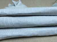 Кожа сиамского крокодила брюхо краст крокодиловая кожа шкурами ширина 36см, неокрашенная крокодиловая кожа- краст. Фото шкур крокодиловой кожи представлены справочно, рисунок кожи, оттенок и размеры необходимо уточнять перед покупкой. Брюшная часть сиамского крокодила, кожа высокого качества выделки, кожа мягкая и эластичная, краст белоснежного цвета. Крокодиловая кожа подготовлена для дальнейшего окрашивания в любые, даже в самые светлые оттенки. Такая кожа будет востребована теми мастерами кто помимо индивидуального пошива практикует и индивидуальное окрашивание, патинаж и прочие техники. Если вы ищите крокодиловую кожу под пару обуви, свяжитесь с нами, и мы подберем для вас подходящую кожу. Также если вы находитесь в поиске одежной кожи крокодила, дайте нам знать, и мы подберем кожу для вашего проекта. На нашли то, что искали? Свяжитесь с нами, и мы постараемся помочь вам с выбором кожи. Важное замечание мы предлагаем не тянутую кожу крокодила, мы не вытягиваем кожу в ширину для увеличения размеров шкуры, посему, если в вы занимаетесь индивидуальным пошивом, например, обуви, и вам нужно натянуть, обтянуть крокодиловую кожу на обувную колодку, смело обращайтесь к нам за кожей крокодила, наша кожа - не вытянутая.