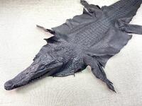 Натуральная шкура сиамского крокодила, крокодиловая шкура с головой и лапами цвет черный, ширина шкуры 28см. Эта кожа молодых крокодиловых особей, шкурки скорей декоративные, для размещения на стене или каминной полке, экзотическим образом дополнит практически любой интерьер, отличный и оригинальный подарок для близкого человека. Натуральная крокодиловая шкура с настоящей крокодиловой головой, голова с челюстями и зубами. Шкура с передними и задними лапами, лапы с пальцами и крокодиловыми когтями. Некоторые из мастеров приобретают эти шкуры и делают из этой кожи накладки для телефонов, ремешки для часов бумажники и прочую мелкую кожгалантерею. Молодая крокодиловая кожа имеет полную текстуру крокодиловой кожи, но еще не имеет ярко выраженной спинной текстуры, что придает коже большую податливость способствует пошиву.