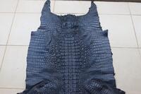 Кожа крокодила спинная часть, ширина 72см, цвет темно-синий. Натуральная кожа сиамского крокодила, фактурная спинная часть. Кожа мягкая, эластичная, очень приятная на ощупь. Кожа высокого качества выделки и окраса. Галантерейная крокодиловая кожа толщиной 1-2мм, в зависимости от размера шкуры, идеально подходит для изготовления сумок, портфелей, клатчей, кошельков, ремней и часовых ремней, и прочей кожгалантереи. Данная кожа крокодила может также быть использована и для индивидуального пошива обуви, правда нужно будет подобрать пару симметричных по рисунку крокодиловых шкур. Также, данную спинную часть кожи крокодила можно использовать при индивидуальном пошиве грубой куртки байкера, но для этого нужно подобрать большую, широкую крокодиловую шкуру с крупным и симметричным затылком и довольно фактурной, агрессивной спинной частью. В качестве дополнительной услуги, в некоторых случаях, для шкур крокодила с фактурной спинной частью, мы можем предложить дополнительные услуги, такие как сгонка толщины и склеивание передних и задних лап для создания единой плоскости шкуры.