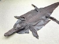 Кожа сиамского крокодила, спинная часть, шкура с головой и четырьмя лапами. Кожа мягка и эластичная, хорошего качества выделки. Выглядит довольно необычно и притягивает взгляд. Данная коже может послужить оригинальным и запоминающимся подарком, ее можно использовать для декорации помещений или стены. А также эта кожа может использоваться матером для изготовления мелких сувенирных предметов, вставки в телефонные чехлы, ремешки для часов и прочее. Эта кожа молодой особи и поэтому подкожные остеодермы не имеют значительной прочности и не усложняют работу мастера.