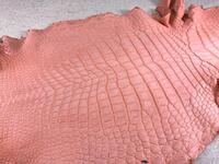 Кожа сиамского крокодила, брюшная часть, розово-лососевый цвет, ширина 32см. Крокодиловая кожа высокого качества выделки и окраса, кожа мягкая и эластичная, подходит для индивидуального пошива обуви, сумок, ремней, кошельков и другой кожгалантереи. Два важных замечания, фото крокодиловых шкур представлены справочно, внешний вид, размер, форма шкуры и оттенок могут отличаться от шкур крокодила в наличии, посему свяжитесь с нами и попросите предоставить вам живые фото и видео интересующих вас шкур крокодила. Мы не занимаемся искусственным увеличением крокодиловых шкур путем их растягивания для увеличения физической ширины шкуры, поэтому покупая у нас крокодиловую кожу вы сможете натянуть ее на обувную колодку, если на то, есть необходимость. Свяжитесь с нами, и мы постараемся подобрать крокодиловую кожу для вашего проекта.