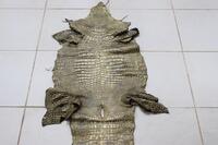 Кожа сиамского крокодила, брюшная часть ширина 44см, цвет черный с золотым. Крокодиловая кожа галантерейной выделки, толщиной от 1.2 до 1,5мм. Кожа сиамского крокодила, брюшная часть, нежная, эластичная и высокого качества выделки и окраса, кожа очень приятная на ощупь. Эта кожа крокодила отлично подходит для индивидуального пошива сумок, ремней, кошельков обуви и другой кожгалантереи. Если вы ищите кожу крокодила под конкретный проект, сумка, портфель, пара обуви, обратитесь к нам, и мы поможем подобрать кожу для вашего проекта отвечающего всем параметрам. Также у вас есть возможность заказать кожу крокодила одежного качества выделки. Свяжитесь с нами если вы ищите кожу крокодила краст, мы предложим вам варианты из наличия.