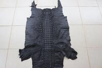 Кожа крокодила спинная часть, ширина 69см, цвет черный. Натуральная кожа сиамского крокодила, фактурная спинная часть. Кожа мягкая, эластичная, очень приятная на ощупь. Кожа высокого качества выделки и окраса. Галантерейная крокодиловая кожа толщиной 1-2мм, в зависимости от размера шкуры, идеально подходит для изготовления сумок, портфелей, клатчей, кошельков, ремней и часовых ремней, и прочей кожгалантереи. Данная кожа крокодила может также быть использована и для индивидуального пошива обуви, правда нужно будет подобрать пару симметричных по рисунку крокодиловых шкур. Также, данную спинную часть кожи крокодила можно использовать при индивидуальном пошиве грубой куртки байкера, но для этого нужно подобрать большую, широкую крокодиловую шкуру с крупным и симметричным затылком и довольно фактурной, агрессивной спинной частью. В качестве дополнительной услуги, в некоторых случаях, для шкур крокодила с фактурной спинной частью, мы можем предложить дополнительные услуги, такие как сгонка толщины и склеивание передних и задних лап для создания единой плоскости шкуры.