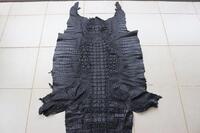 Кожа крокодила спинная часть, ширина 78см, цвет черный. Натуральная кожа сиамского крокодила, фактурная спинная часть. Кожа мягкая, эластичная, очень приятная на ощупь. Кожа высокого качества выделки и окраса. Галантерейная крокодиловая кожа толщиной 1-2мм, в зависимости от размера шкуры, идеально подходит для изготовления сумок, портфелей, клатчей, кошельков, ремней и часовых ремней, и прочей кожгалантереи. Данная кожа крокодила может также быть использована и для индивидуального пошива обуви, правда нужно будет подобрать пару симметричных по рисунку крокодиловых шкур. Также, данную спинную часть кожи крокодила можно использовать при индивидуальном пошиве грубой куртки байкера, но для этого нужно подобрать большую, широкую крокодиловую шкуру с крупным и симметричным затылком и довольно фактурной, агрессивной спинной частью. В качестве дополнительной услуги, в некоторых случаях, для шкур крокодила с фактурной спинной частью, мы можем предложить дополнительные услуги, такие как сгонка толщины и склеивание передних и задних лап для создания единой плоскости шкуры.