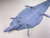 Натуральная шкура сиамского крокодила, крокодиловая шкура с головой и лапами цвет серый, ширина шкуры 32см. Эта кожа молодых крокодиловых особей, шкурки скорей декоративные, для размещения на стене или каминной полке, экзотическим образом дополнит практически любой интерьер, отличный и оригинальный подарок для близкого человека. Натуральная крокодиловая шкура с настоящей крокодиловой головой, голова с челюстями и зубами. Шкура с передними и задними лапами, лапы с пальцами и крокодиловыми когтями. Некоторые из мастеров приобретают эти шкуры и делают из этой кожи накладки для телефонов, ремешки для часов бумажники и прочую мелкую кожгалантерею. Молодая крокодиловая кожа имеет полную текстуру крокодиловой кожи, но еще не имеет ярко выраженной спинной текстуры, что придает коже большую податливость способствует пошиву.