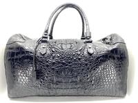 Спортивная сумка из фактурной крокодиловой кожи черного цвета Ширина – 55см Высота – 30см Толщина – 25см Большая спортивная сумка из натуральной крокодиловой кожи, спинная часть сиамского крокодила. Для изготовления сумок данной модели использована кожа со специальных крокодиловых ферм, следовательно, ни один крокодил в дикой среде не пострадал. Одна из самых больших и вместительных сумок из крокодиловой кожи что мне доводилось видеть, эта сумка довольно редкая, потому что для ее пошива требуется очень большая шкура со спинной частью. На лицевой стороне спортивной сумки мы видим очень большую симметричную затылочную часть шкуры крокодила, далее ниже начинается красивая и неповторимая спинная часть крокодиловой шкуры, с уникальной природной спинной фактурой. На обратной стороне сумки мы видим шикарную спинную фактуру крокодиловой шкуры. Ручки сумки также выполнены из крокодиловой кожи, боковые части сумки также выполнены из кожи крокодила, дно сумки выполнено из крокодиловой кожи со спинно-хвостовой фактурой. В верхней части сумки вшита крупная металлическая двухсторонняя молния, в комплекте идет съемный металлический замочек отделанный кожей крокодила под цвет сумки. К одной из ручек прикреплен шнурок из кожи крокодила с ключиком для замка. На боковых поверхностях сумки пришиты D-образные кольца для крепления съемного плечевого ремня. Съемный, регулируемый по длине плечевой ремень, выполненный на основании из телячьей кожи черного цвета, с отделкой внешней стороны ремня крокодиловой кожей в комплекте. В качестве материала подклада сумки использована натуральная кожа теленка черного цвета. Внутри сумки для удобства пользования устроены удобные карманы, сдвоенный накладной и на противоположной стороне вшивной на молнии.