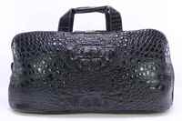 Спортивная сумка из фактурной крокодиловой кожи цвет черный. Ширина-50см Высота-22см Толщина-25см Большая удобная двухсекционная дорожная или спортивная сумка из кожи крокодила. Для изготовления спортивных сумок данной модели используется натуральная кожа сиамского крокодила, фактурная спинная часть крокодиловой шкуры. Кожа крокодила всякого качества выделки и окраса. В качестве основного украшения данной крокодиловой сумки, лицевой поверхности сумки устроена большая, крупная и фактурная затылочная часть крокодиловой шкуры. Обратная сторона сумки из кожи крокодила выполнена с применением фактурной спинной части шкуры крокодила. Боковые вставки сумки выполнены из натуральной крокодиловой кожи с хвостовой фактурой. Дно сумки из кожи крокодила выполнено с применением фактурной крокодиловой кожи со спинно-хвостовой фактурой. Верхняя часть сумки выполнена с применением гладких частей крокодиловой кожи. В верхней части крокодиловой сумки вшиты удобные ручки, ручки выполнены на основании из натуральной кожи теленка под цвет изделия, верхняя часть ручек выполнена из гладкой крокодиловой кожи. Все внешние поверхности крокодиловой сумки выполнены из натуральной кожи крокодила. В верхней части сумки вшиты две металлические двухсторонние молнии, молнии преграждают доступ в сумку. Использование двусторонних молний облегчает доступ внутрь спортивной сумки из кожи крокодила. Молния имеет П-образную форму, что увеличивает ширину открывания молнии и сумки и как следствие облегчает доступ в сумку. Внутреннее убранство спортивной крокодиловой сумки выполнено из натуральной кожи теленка, для удобства пользования внутри сумки устроены карманы, сдвоенный накладной в одном отделении и широкий карман на молнии в другом отделении крокодиловой сумки. На боковых поверхностях спортивной сумки из крокодиловой кожи расположены D-образные кольца для крепления съемного плечевого ремня. Съемный, регулируемый плечевой ремень в комплекте. Плечевой ремень изготовлен на основании из мягкой кожи теленка с отделкой внешней стороны крокодиловой кожей.