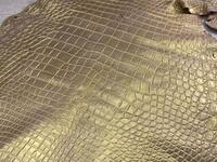 Натуральная кожа сиамского крокодила, брюшная часть цвет золотой, ширина шкуры 44см. Крокодиловое брюхо высокого качества выделки и окраса, толщина кожи 1,2мм этот материал идеально подходит для индивидуального пошива обуви, сумок, портфелей, кошельков, ремней и прочей кожгалантереи. Мы не занимаемся искусственным увеличением ширины шкуры путем ее растягивания, поэтому если вы ищете крокодиловую кожу, которой согласно вашему проекту вам надо обтянуть, например, обувную колодку, смело обращайтесь к нам. Также хочется отметить что фотографии крокодиловой кожи представлены справочно и по факту могут отличаться от шкур из наличия как по форме, таки по оттенку, поэтому перед покупкой свяжитесь с нами и попросите предоставить вам живые фото и видео необходимых вам шкур.