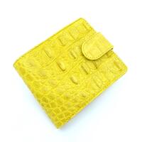Кошелек из крокодиловой кожи с монетницей и хлястиком желтого цвета.