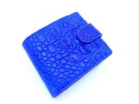 Кошелек из крокодиловой кожи с монетницей и хлястиком ярко синего цвета.