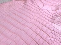 Кожа сиамского крокодила, брюшная часть, розово-лососевый цвет, ширина 32см. Крокодиловая кожа высокого качества выделки и окраса, кожа мягкая и эластичная, подходит для индивидуального пошива обуви, сумок, ремней, кошельков и другой кожгалантереи. Два важных замечания, фото крокодиловых шкур представлены справочно, внешний вид, размер, форма шкуры и оттенок могут отличаться от шкур крокодила в наличии, посему свяжитесь с нами и попросите предоставить вам живые фото и видео интересующих вас шкур крокодила. Мы не занимаемся искусственным увеличением крокодиловых шкур путем их растягивания для увеличения физической ширины шкуры, поэтому покупая у нас крокодиловую кожу вы сможете натянуть ее на обувную колодку, если на то, есть необходимость. Свяжитесь с нами, и мы постараемся подобрать крокодиловую кожу для вашего проекта.