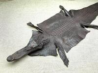 Натуральная шкура сиамского крокодила, крокодиловая шкура с головой и лапами цвет кофейный, темно-коричневый, ширина шкуры 31см. Эта кожа молодых крокодиловых особей, шкурки скорей декоративные, для размещения на стене или каминной полке, экзотическим образом дополнит практически любой интерьер, отличный и оригинальный подарок для близкого человека. Натуральная крокодиловая шкура с настоящей крокодиловой головой, голова с челюстями и зубами. Шкура с передними и задними лапами, лапы с пальцами и крокодиловыми когтями. Некоторые из мастеров приобретают эти шкуры и делают из этой кожи накладки для телефонов, ремешки для часов бумажники и прочую мелкую кожгалантерею. Молодая крокодиловая кожа имеет полную текстуру крокодиловой кожи, но еще не имеет ярко выраженной спинной текстуры, что придает коже большую податливость способствует пошиву.