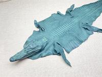 Натуральная шкура сиамского крокодила, крокодиловая шкура с головой и лапами цвет изумрудный, темно-зеленый, ширина шкуры 34см. Эта кожа молодых крокодиловых особей, шкурки скорей декоративные, для размещения на стене или каминной полке, экзотическим образом дополнит практически любой интерьер, отличный и оригинальный подарок для близкого человека. Натуральная крокодиловая шкура с настоящей крокодиловой головой, голова с челюстями и зубами. Шкура с передними и задними лапами, лапы с пальцами и крокодиловыми когтями. Некоторые из мастеров приобретают эти шкуры и делают из этой кожи накладки для телефонов, ремешки для часов бумажники и прочую мелкую кожгалантерею. Молодая крокодиловая кожа имеет полную текстуру крокодиловой кожи, но еще не имеет ярко выраженной спинной текстуры, что придает коже большую податливость способствует пошиву.