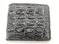 Кошелек из кожи крокодила в оплетке, с отделением для монет, цвет черный.