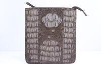 Классическая мужская плечевая крокодиловая сумка. Сумка из крокодиловой кожи в оплётке, плечевая плоская сумка для мужчин. Для производства крокодиловых сумок данной модели использована натуральная кожа сиамского крокодила, фактурные спинные корды крокодиловой шкуры, кожа высокого качества выделки и окраса. В верхней части крокодиловой сумки вшита металлическая молния преграждающая доступ в основной объем сумки, внутри сумка выполнена в одном объеме, для удобства пользования сумкой внутри устроены удобные карманы. Отличительной характеристикой этой крокодиловой сумки является оплетка сумки по внешним краям и соединение частей крокодиловой кожи путем оплетки, оплетка выполнена специальным кожаным шнурком. На обратной стороне сумки устроен несъемный, регулируемый по длине плечевой ремень, для изготовления плечевого ремня крокодиловой сумки была использована натуральная кожа теленка, цвет кожи теленка подобран под цвет крокодиловой кожи.