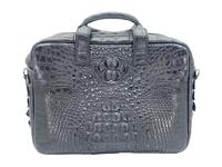 Классическая мужская сумка из крокодиловой кожи. Для изготовления сумок данной модели использована натуральная кожа сиамского крокодила, спинная часть, кожа мягкая, упругая и очень приятная на ощупь, кожа высокого качества выделки и окраса. По форме сумка классической прямоугольной формы. На лицевой поверхности сумки мы видим красивую неповторимую затылочную часть шкуры сиамского крокодила переходящую ниже в спинную часть, обратная сторона сумки выполнена с применением спинной части неповторимой фактурой крокодиловой кожи. Боковые вставки сумки выполнены с применением хвостовых частей крокодиловой кожи, дно сумки устроено из гладких частей кожи крокодила. В верхней части сумки вшита крупная металлическая молния вставки слева и справа от молнии выполнены в коже крокодила, гладкой брюшной части. Ручки сумки также выполнены в коже крокодила. Расстояние от верха сумки до ручек увеличенное и равно 10см. Сумка внутри выполнена в одном объеме, для удобства пользования внутри сумки устроено несколько карманов, скрытый боковой на молнии. Плоский карман на молнии образующий еще один накладной карман. Вертикальный карман для мобильного телефона и пара кармашков для пишущих приспособлений. Съемный, регулируемый по длине плечевой ремень из кожи теленка с отделкой кожей крокодила и удобной площадкой под плечо, отделенной крокодиловой кожей в комплекте. В качестве материала подклада используется кожа теленка под цвет изделия.