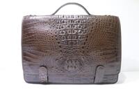 Мужской портфельА4 из фактурной крокодиловой кожи цвет темно-коричневый.