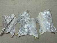 Кожа крокодила, крокодиловая кожа обрез цвета гималаи с перламутровым эффектом. Продается обрез крокодиловой кожи в виде крокодиловых коленок, крокодиловых лап. Цена указана за примерно 100граммов крокодиловой кожи с учетом стоимости доставки. Данные позиции крокодиловой кожи в наличии на тайском складе, эти позиции крокодиловой кожи не будут отправляться на московский склад и прибрести их можно только заказом из Таиланда напрямую. Стоимость доставки включена в стоимость кожи крокодила. Сроки доставки кожи крокодила из Таиланда в Москву примерно 10 дней, если вы находитесь не в Москве, время доставки увеличится. Для заказа крокодиловой кожи свяжитесь с нами любым удобным для вас способом. На фото вы видите от 2 до 5ти натуральных крокодиловых лап это примерно 100граммов крокодиловой кожи. В зависимости размера куска кожи крокодила и его толщины в 100 граммов помещается от 2 до 5 кусков крокодиловой кожи. Естественно, чем кусок крокодиловой кожи больше по размеру, тем он толще. Если у вас есть выкройка заданного размера и вы хотите подобрать крокодиловую кожу под вашу выкройку, такое возможно, свяжитесь с нами, и мы обсудим это. Если вы желаете уточнить размеры той или иной крокодиловой лапы в наличии, напишите нам, и мы уточним для вас размер куска крокодиловой кожи.