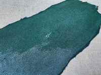 Натуральная полированная кожа морского ската, продолговатой формы, цвет темно-зеленый, изумрудный.