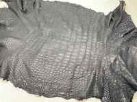 Натуральная крокодиловая кожа одежной выделки, цвет черный матовый, ширина шкуры 46см, толщина 0,8мм. Данная крокодиловая кожа отлично подойдет для индивидуального пошива верхней одежды, например, куртки из кожи крокодила. Кожа очень мягкая и эластичная, высокое качество выделки и окраса, на представленных фото одежная кожа крокодила на имеет финишного покрытия, посему может выглядеть несколько белесо и невзрачно, но это только до момента нанесения финишного покрытия, после чего одежная кожа крокодила приобретет необходимую глубину и насыщенность черного цвета. В этой партии выделки было 10 крокодиловых шкур, которые стали кожей крокодила одежной выделки. Вот размеры шкур из этой, одной партии выделки: 38см, 45см, 46см, 47см, 47см, 47см, 48см, 49см, 50см и 50см. Все эти 10 крокодиловых шкур одежной выделки пока доступны и в наличии. Данная одежная кожа крокодила не является кожей крокодила первого сорта. На каких-то крокодиловых шкурах есть небольшие дефекты, какие-то без дефектов, надо смотреть как выкройка ложиться на кожу крокодила, что можно обойти при раскрое, в что нет. Также доступна под заказ кожа крокодила одежной выделки, брюшная часть сорт А, размер +50см, напишите нам, и мы постараемся выделать и окрасить одежную кожу крокодила для вашего проекта.