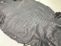 Натуральная крокодиловая кожа одежной выделки, цвет черный матовый, ширина шкуры 47см, толщина 0,8мм. Данная крокодиловая кожа отлично подойдет для индивидуального пошива верхней одежды, например, куртки из кожи крокодила. Кожа очень мягкая и эластичная, высокое качество выделки и окраса, на представленных фото одежная кожа крокодила на имеет финишного покрытия, посему может выглядеть несколько белесо и невзрачно, но это только до момента нанесения финишного покрытия, после чего одежная кожа крокодила приобретет необходимую глубину и насыщенность черного цвета. В этой партии выделки было 10 крокодиловых шкур, которые стали кожей крокодила одежной выделки. Вот размеры шкур из этой, одной партии выделки: 38см, 45см, 46см, 47см, 47см, 47см, 48см, 49см, 50см и 50см. Все эти 10 крокодиловых шкур одежной выделки пока доступны и в наличии. Данная одежная кожа крокодила не является кожей крокодила первого сорта. На каких-то крокодиловых шкурах есть небольшие дефекты, какие-то без дефектов, надо смотреть как выкройка ложиться на кожу крокодила, что можно обойти при раскрое, в что нет. Также доступна под заказ кожа крокодила одежной выделки, брюшная часть сорт А, размер +50см, напишите нам, и мы постараемся выделать и окрасить одежную кожу крокодила для вашего проекта.