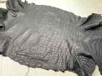Натуральная крокодиловая кожа одежной выделки, цвет черный матовый, ширина шкуры 48см, толщина 0,8мм. Данная крокодиловая кожа отлично подойдет для индивидуального пошива верхней одежды, например, куртки из кожи крокодила. Кожа очень мягкая и эластичная, высокое качество выделки и окраса, на представленных фото одежная кожа крокодила на имеет финишного покрытия, посему может выглядеть несколько белесо и невзрачно, но это только до момента нанесения финишного покрытия, после чего одежная кожа крокодила приобретет необходимую глубину и насыщенность черного цвета. В этой партии выделки было 10 крокодиловых шкур, которые стали кожей крокодила одежной выделки. Вот размеры шкур из этой, одной партии выделки: 38см, 45см, 46см, 47см, 47см, 47см, 48см, 49см, 50см и 50см. Все эти 10 крокодиловых шкур одежной выделки пока доступны и в наличии. Данная одежная кожа крокодила не является кожей крокодила первого сорта. На каких-то крокодиловых шкурах есть небольшие дефекты, какие-то без дефектов, надо смотреть как выкройка ложиться на кожу крокодила, что можно обойти при раскрое, в что нет. Также доступна под заказ кожа крокодила одежной выделки, брюшная часть сорт А, размер +50см, напишите нам, и мы постараемся выделать и окрасить одежную кожу крокодила для вашего проекта.