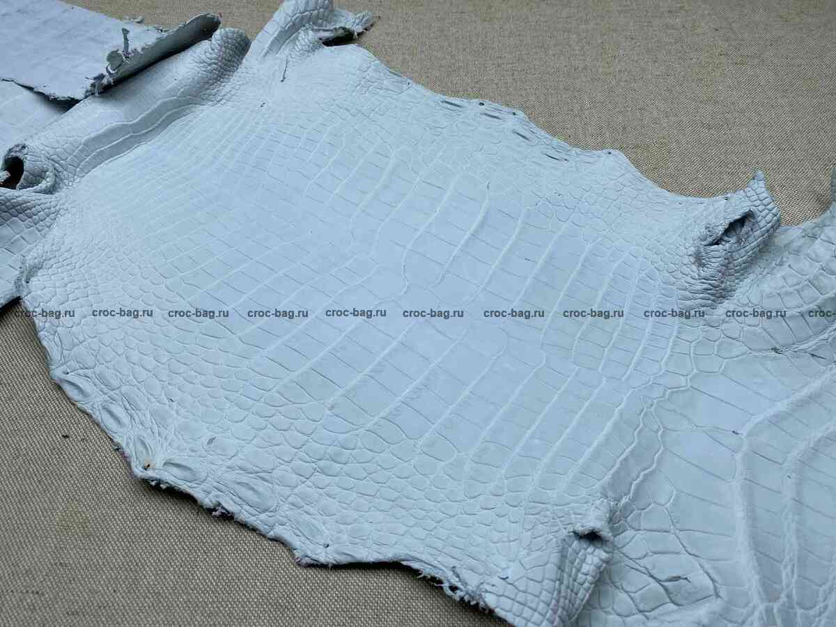 Натуральная кожа сиамского крокодила, брюхо крокодила, сорт А, не крашенная кожа – краст, кожа готовая под окраску, ширина шкуры – 47см. Брюшная часть сиамского крокодила, кожа высокого качества выделки, белоснежный краст, кожа выделена под окрашивание любым оттенком, от самых легких светлых, до классического черного. Кожа мягкая и эластичная, кожа без дефектов, порезов и шрамов, только природный рисунок крокодилового брюха, фото представлены справочно, форма шкур и оттенок шкур будут отличаться от представленных на фото, свяжитесь с нами для получения живых фото и видео этих крокодиловых шкур. Данная кожа отлично походит для индивидуального пошива обуви, больших сумок, дипломатов, спортивных сумок, мужских портфелей и т.п. Также данную шкуру по достоинству оценят те из вас кто помимо индивидуального пожива также занимается и индивидуальным окрашиванием изделий, отшитых из крокодилового краста. Свяжитесь с нами, и мы постараемся подобрать кожу для вашего проекта.