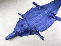 Натуральная шкура сиамского крокодила, крокодиловая шкура с головой и лапами цвет темно-синий, ширина шкуры 35см. Эта кожа молодых крокодиловых особей, шкурки скорей декоративные, для размещения на стене или каминной полке, экзотическим образом дополнит практически любой интерьер, отличный и оригинальный подарок для близкого человека. Натуральная крокодиловая шкура с настоящей крокодиловой головой, голова с челюстями и зубами. Шкура с передними и задними лапами, лапы с пальцами и крокодиловыми когтями. Некоторые из мастеров приобретают эти шкуры и делают из этой кожи накладки для телефонов, ремешки для часов бумажники и прочую мелкую кожгалантерею. Молодая крокодиловая кожа имеет полную текстуру крокодиловой кожи, но еще не имеет ярко выраженной спинной текстуры, что придает коже большую податливость способствует пошиву.