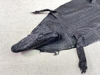 Натуральная шкура сиамского крокодила, крокодиловая шкура с головой и лапами цвет черный, ширина шкуры 22см. Эта кожа молодых крокодиловых особей, шкурки скорей декоративные, для размещения на стене или каминной полке, экзотическим образом дополнит практически любой интерьер, отличный и оригинальный подарок для близкого человека. Натуральная крокодиловая шкура с настоящей крокодиловой головой, голова с челюстями и зубами. Шкура с передними и задними лапами, лапы с пальцами и крокодиловыми когтями. Некоторые из мастеров приобретают эти шкуры и делают из этой кожи накладки для телефонов, ремешки для часов бумажники и прочую мелкую кожгалантерею. Молодая крокодиловая кожа имеет полную текстуру крокодиловой кожи, но еще не имеет ярко выраженной спинной текстуры, что придает коже большую податливость способствует пошиву.