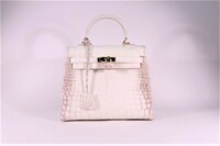 Сумка женская из кожи крокодила копия Kelly 11 дюймов цвет белый, гималаи.