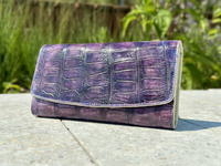 Женский кошелек из натуральной кожи крокодила, фиолетового цвета.