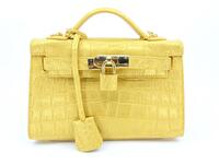 Сумка женская из кожи крокодила копия Kelly 9 дюймов цвет золото.