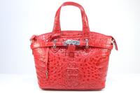 Современная и стильная женская сумка из натуральной крокодиловой кожи. Для изготовления сумок данной модели используется натуральная кожа крокодила кайман, кожа высокого качества выделки и окраса. Крокодиловая сумка для женщин в форме перевёрнутой трапеции. Лицевая поверхность сумки, обратная сторона, верхние ручки сумки, все эти части выполнены из натуральной кожи крокодила кайман. К качестве основного украшения крокодиловой сумки на лицевой поверхности сумки использована крокодиловая кожа и фактурной спинной и затылочной частью. Обратная часть сумки выполнена с применением спинной части кожи крокодила. В качестве дополнительного украшения сумки из крокодиловой кожи, на лицевой поверхности сумки устроен декоративный пояс из кожи крокодила и декоративным замочком, замочек оклеен крокодиловой кожей под цвет изделия. Ключик от декоративного замочка прикреплен к одной из верхних ручек на кожаном шнурке. В верхней части крокодиловой сумки устроены удобные ручки, ручки выполнены на основании из натуральной кожи теленка, цвет кожи теленка подобран под цвет кожи крокодила, внешняя часть верхних ручек выполнены из крокодиловой кожи. В верхней части сумки устроена металлическая молния преграждающая доступ в основной объем сумки из кожи крокодила. Крокодиловая сумка внутри выполнена в одном объеме, для удобства пользования на внутренних поверхностях сумки устроены удобные карманы для хранения предметов первой необходимости. Скрытый вшивной карман на молнии и на противоположной стороне сдвоенный накладной карман. В качестве материала подклада использована натуральная кожа теленка, цвет кожи теленка подобран под цвет кожи крокодила. На боковых поверхностях крокодиловой сумки устроены D-образные кольца для крепления съемного плечевого ремня. Плечевой ремень имеет возможность регулирования по длине, ремень изготовлен на основании из кожи теленка, верхняя часть ремня выполнена из крокодиловой кожи. Дно сумки выполнено из кожи теленка, на дне расположены 4 металлические ножки.