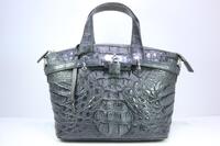 Современная и стильная женская сумка из натуральной крокодиловой кожи. Для изготовления сумок данной модели используется натуральная кожа крокодила кайман, кожа высокого качества выделки и окраса. Крокодиловая сумка для женщин в форме перевёрнутой трапеции. Лицевая поверхность сумки, обратная сторона, верхние ручки сумки, все эти части выполнены из натуральной кожи крокодила кайман. К качестве основного украшения крокодиловой сумки на лицевой поверхности сумки использована крокодиловая кожа и фактурной спинной и затылочной частью. Обратная часть сумки выполнена с применением спинной части кожи крокодила. В качестве дополнительного украшения сумки из крокодиловой кожи, на лицевой поверхности сумки устроен декоративный пояс из кожи крокодила и декоративным замочком, замочек оклеен крокодиловой кожей под цвет изделия. Ключик от декоративного замочка прикреплен к одной из верхних ручек на кожаном шнурке. В верхней части крокодиловой сумки устроены удобные ручки, ручки выполнены на основании из натуральной кожи теленка, цвет кожи теленка подобран под цвет кожи крокодила, внешняя часть верхних ручек выполнены из крокодиловой кожи. В верхней части сумки устроена металлическая молния преграждающая доступ в основной объем сумки из кожи крокодила. Крокодиловая сумка внутри выполнена в одном объеме, для удобства пользования на внутренних поверхностях сумки устроены удобные карманы для хранения предметов первой необходимости. Скрытый вшивной карман на молнии и на противоположной стороне сдвоенный накладной карман. В качестве материала подклада использована натуральная кожа теленка, цвет кожи теленка подобран под цвет кожи крокодила. На боковых поверхностях крокодиловой сумки устроены D-образные кольца для крепления съемного плечевого ремня. Плечевой ремень имеет возможность регулирования по длине, ремень изготовлен на основании из кожи теленка, верхняя часть ремня выполнена из крокодиловой кожи. Дно сумки выполнено из кожи теленка, на дне расположены 4 металлические ножки.