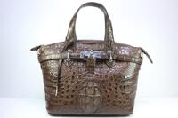 Современная и стильная женская сумка из натуральной крокодиловой кожи. Для изготовления сумок данной модели используется натуральная кожа крокодила кайман, кожа высокого качества выделки и окраса. Крокодиловая сумка для женщин в форме перевёрнутой трапеции. Лицевая поверхность сумки, обратная сторона, верхние ручки сумки, все эти части выполнены из натуральной кожи крокодила кайман. К качестве основного украшения крокодиловой сумки на лицевой поверхности сумки использована крокодиловая кожа и фактурной спинной и затылочной частью. Обратная часть сумки выполнена с применением спинной части кожи крокодила. В качестве дополнительного украшения сумки из крокодиловой кожи, на лицевой поверхности сумки устроен декоративный пояс из кожи крокодила и декоративным замочком, замочек оклеен крокодиловой кожей под цвет изделия. Ключик от декоративного замочка прикреплен к одной из верхних ручек на кожаном шнурке. В верхней части крокодиловой сумки устроены удобные ручки, ручки выполнены на основании из натуральной кожи теленка, цвет кожи теленка подобран под цвет кожи крокодила, внешняя часть верхних ручек выполнены из крокодиловой кожи. В верхней части сумки устроена металлическая молния преграждающая доступ в основной объем сумки из кожи крокодила. Крокодиловая сумка внутри выполнена в одном объеме, для удобства пользования на внутренних поверхностях сумки устроены удобные карманы для хранения предметов первой необходимости. Скрытый вшивной карман на молнии и на противоположной стороне сдвоенный накладной карман. В качестве материала подклада использована натуральная кожа теленка, цвет кожи теленка подобран под цвет кожи крокодила. На боковых поверхностях крокодиловой сумки устроены D-образные кольца для крепления съемного плечевого ремня. Плечевой ремень имеет возможность регулирования по длине, ремень изготовлен на основании из кожи теленка, верхняя часть ремня выполнена из крокодиловой кожи. Дно сумки выполнено из кожи теленка, на дне расположены 4 металлические ножки.