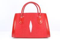 Классическая женская прямоугольная сумка из натуральной кожи морского ската. Для изготовления сумок данной модели используется кожа морского ската высокого качества выделки и окрашивания. Лицевая часть сумки и ее обратная сторона выполнен из кожи морского ската, на каждой из сторон вы можете видеть вертикальные белые ромбообразные глазки, это характерная особенность окрашивания кожи морского ската. На лицевой поверхности и обратной стороне сумки по бокам выполнены декоративные вставки из кожи теленка под цвет кожи морского ската. Ручки выполнены из кожи теленка окрашенной под цвет кожи морского ската. Боковые поверхности сумки, для большей эластичности выполнены из натуральной кожи теленка. В верхней части сумки, немного утопленной устроена молния преграждающая доступ в основной объем сумка, сумка внутри устроена в одном объёме. Для удобства пользования сумкой из скат на внутренних поверхностях сумки устроены удобные карманы, накладной карман на молнии, вшивной карман на молнии и плоский накладной карман на противоположной стороне. В качестве материала подклада использована ткань, подобранная под цвет кожи морского ската. В комплекте с сумкой идет съемный, регулируемый по длине плечевой ремень, ремень выполнен из кожи теленка, цвет кожи теленка подобран под цвет кожи морского ската на сумке.