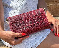 Женская сумка-клатч из кожи крокодила цвет вишневый