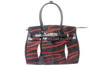 Сумка из кожи морского ската в стиле Hermès Birkin 30 черного цвета с узором в виде волнистых линий красного цвета