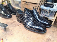 Также Вы можете обсудить с мастером заказ комплектов, например, пара обуви из крокодиловой кожи и ремень из кожи крокодила. Пара обуви из кожи крокодила и сумка или портфель из крокодиловой кожи и т.д.