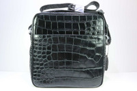 Плечевая сумка мужская прямоугольной формы из натуральной кожи крокодила, крокодиловое брюхо черного цвета. Ширина-25см, высота-27см, толщина-10см. Для производства крокодиловых сумок данной модели используется натуральная брюшная часть сиамского крокодила, нежнейшая брюшная часть крокодиловой шкуры. Крокодиловая кожа высокого качества выделки и окраса, кожа мягкая, эластичная и очень приятная на ощупь. Все внешние части сумки отшиты из натуральной кожи крокодила брюшной и гладких частей. На лицевой и на обратной сторонах сумки устроены удобные плоские карманы, карманы выполнены на всю ширину сумки. Доступ в эти карманы преграждает металлическая молния. На боковых поверхностях сумки расположены металлические кольца, к которым крепится несъемный плечевой ремень. Несъемный плечевой ремень с возможностью регулировки по длине изготовлен на основании из натуральной кожи теленка и в качестве дополнительного украшения сумки плечевой ремень отделан кожей крокодила. Для дополнительного удобства пользования сумкой плечевой ремень оборудован удобной плечевой лопаткой выполненной из кожи теленка с отделкой лицевой части кожей крокодила. В верхней части сумки вшита металлическая П-образная, двухсторонняя молния преграждающая доступ в основной объем сумки. Применение П-образной молнии помогает более широко открыть доступ в основной объем сумки и убрать в сумку объемный предмет или достать из сумки этот предмет становится легче. Применение двусторонней молнии делает эту сумку более удобной для ношения на удобном и привычном для вас плече, а также позволяет пользоваться данной сумкой как правшам, так и левшам. Внутри сумка выполнена в одном объеме. Для большего удобства пользования этой сумкой внутри сумки устроены удобные карманы для предметов первой необходимости сдвоенный накладной карман и на противоположной стороне боковой вшивной карман на молнии. В качестве материала подклада сумок данной модели используется натуральная мягкая кожа теленка, кожа теленка по цвету подобрана под цвет кожи крокодила.