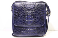 Сумка мужская плечевая из натуральной крокодиловой кожи темно-синего цвета. Приблизительные размеры Ширина 20-22см, высота 25-27 см толщина 5-7см. Удобная мужская плечевая сумка из натуральной фактурной крокодиловой кожи. На лицевой поверхности сумки расположен откидывающийся вверх лицевой клапан. В центральной части лицевой клапан украшен натуральной фактурной затылочной частью крокодиловой шкуры. В нижней части клапан фиксируется на скрытые магниты, вшитые магниты. Нижняя часть сумки на лицевой поверхности украшена кожей крокодила со спинной фактурой. Обратная часть сумки выполнена из кожи крокодила, спинная часть крокодиловой шкуры. На обратной части сумки устроен удобный вшивной карман на молнии. Боковые части сумки выполнены из мягкой кожи теленка, кожа теленка подобрана под цвет кожи крокодила. Дно сумки выполнено из натуральной кожи крокодила. В верхней части боковых поверхностей сумки устроены металлические кольца для крепления плечевого ремня. Несъемный плечевой ремень, с регулировкой по длине прикреплен к сумке. Плечевой ремень устроен на основании из кожи теленка с внешней отделкой коже крокодила. Внутри крокодиловой сумки, на лицевой поверхности устроен удобный плоский карман на всю ширину сумки. По лицевым клапаном устроена молния преграждающая доступ в основной объем крокодиловой сумки, внутри сумка выполнена в одном объеме, для удобства пользования на внутренних поверхностях сумки устроены удобные карманы, сдвоенный накладной карман и на противоположной стороне вшивной боковой карман на молнии. В качестве материала подклада использована натуральная кожа теленка, цвет кожи теленка подобран под цвет кожи крокодила.