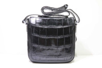 Мужская плечевая крокодиловая сумка черного цвета. Ширина 25см. Высота-27см. Толщина-10см. Для пошива сумок данной модели используется натуральная крокодиловая кожа брюшная часть шкуры сиамского крокодила. Для пошива сумок данной модели используется натуральная кожа крокодила высокого качества выделки и окраса. Крокодиловая кожа мягкая, упругая и эластичная, очень приятная на ощупь. Лицевой клапан, обратная часть сумки, боковые вставки, дно сумки все эти поверхности выполнены из натуральной крокодиловой кожи. Откидывающийся вверх лицевой клапан в нижней его части крепится к сумке на скрытые магниты, вшитые к сумку и лицевой клапан. Под лицевым клапаном устроены отделения для карточек, одно из отделений выполнено с прозрачным окошком. На боковых поверхностях сумки, в верхней их части устроены металлические кольца для крепления плечевого ремня. Несъемный, регулируемый плечевой ремень, выполненный на основании из кожи теленка, с отделкой лицевой поверхности крокодиловой кожей естественно идет в комплекте с крокодиловой сумкой. На лицевой поверхности сумки, под лицевым клапаном устроен удобный плоский карман, карман выполнен на всю ширину и глубину сумки из кожи крокодила. На обратной стороне крокодиловой сумки, в верхней ее части устроен доступ в плоский глубокий карман. Внутри сумки, под лицевым клапаном вшита молния преграждающая доступ в основной объем сумки. Плоский карман на молнии делит внутренний объем крокодиловой сумки на два отделения. Для удобства пользования сумкой внутри устроены удобные карманы, сдвоенный накладной и боковой карман на молнии. В качестве материала подклада используется мягкая кожа теленка, цвет кожи теленка подобран под цвет крокодиловой кожи.