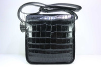 Мужская плечевая крокодиловая сумка черного цвета. Ширина 25см. Высота-27см. Толщина-10см. Для пошива сумок данной модели используется натуральная крокодиловая кожа брюшная часть шкуры сиамского крокодила. Для пошива сумок данной модели используется натуральная кожа крокодила высокого качества выделки и окраса. Крокодиловая кожа мягкая, упругая и эластичная, очень приятная на ощупь. Лицевой клапан, обратная часть сумки, боковые вставки, дно сумки все эти поверхности выполнены из натуральной крокодиловой кожи. Откидывающийся вверх лицевой клапан в нижней его части крепится к сумке на скрытые магниты, вшитые к сумку и лицевой клапан. Под лицевым клапаном устроены отделения для карточек, одно из отделений выполнено с прозрачным окошком. На боковых поверхностях сумки, в верхней их части устроены металлические кольца для крепления плечевого ремня. Несъемный, регулируемый плечевой ремень, выполненный на основании из кожи теленка, с отделкой лицевой поверхности крокодиловой кожей естественно идет в комплекте с крокодиловой сумкой. На лицевой поверхности сумки, под лицевым клапаном устроен удобный плоский карман, карман выполнен на всю ширину и глубину сумки из кожи крокодила. На обратной стороне крокодиловой сумки, в верхней ее части устроен доступ в плоский глубокий карман. Внутри сумки, под лицевым клапаном вшита молния преграждающая доступ в основной объем сумки. Плоский карман на молнии делит внутренний объем крокодиловой сумки на два отделения. Для удобства пользования сумкой внутри устроены удобные карманы, сдвоенный накладной и боковой карман на молнии. В качестве материала подклада используется мягкая кожа теленка, цвет кожи теленка подобран под цвет крокодиловой кожи.