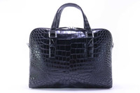Мужская сумка-папка А4, сумка-портфель А4, сумка для документов А4, деловая сумка А4, сумка для ноутбука А4 из натуральной кожи крокодила, брюшная часть, цвет черный. Ширина-38см, высота-28см, толщина-7-8см. Для пошива сумок данной модели используется натуральная кожа сиамского крокодила, брюшная часть крокодиловой шкуры. Крокодиловая кожа высокого качества выделки и окраса, мягкая и эластичная нежнейшая брюшная часть. Все внешние стороны сумки выполнены из натуральной крокодиловой кожи, лицевая и обратная часть сумки выполнены в коже крокодила, боковые вставки, дно сумки, верхние ручки выполнены их крокодиловой кожи. В верхней части сумки вшита удобная металлическая двухсторонняя П-образная молния. Использование П-образной молнии позволяет более широко открыть сумку и убрать в сумку или достать из сумки крупный предмет. Сумка данной модели не имеет ярко выраженной лицевой или обратной стороны и применение двухсторонней молнии позволяет носить данную сумку на любом удобном вам плече. А также данной сумкой могут с удобством пользоваться как правши, так и левши. В верхней части сумки вшиты верхние удобные высокие ручки, крепление верхних ручек выполнено с применением металлических хромированных колец. На боковых поверхностях сумки вшиты D-образные кольца для крепления съемного плечевого ремня. Съемный, с регулировкой длины плечевой ремень в комплекте с сумкой. Плечевой ремень выполнен на основании из кожи теленка, в качестве дополнительного украшения внешняя полоска плечевого ремня выполнена из натуральной кожи крокодила. Сумка внутри выполнена в одном объеме, для удобства пользования сумкой внутри устроены удобные карманы. Боковой карман на молнии и карман для ноутбука или планшета на магнитном хлястике. В качестве материала подклада используется натуральная кожа теленка, цвет кожи теленка подобран под цвет крокодиловой кожи.