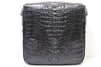 Мужская плечевая крокодиловая сумка черного цвета. Ширина 25см. Высота-27см. Толщина-10см. Для пошива сумок данной модели используется натуральная крокодиловая кожа. На лицевой части сумки расположен откидывающийся вверх лицевой клапан, в качестве основанного украшения клапан украшен фактурной затылочной частью крокодиловой шкуры, далее после крокодилового затылка фактура меняется на спинную. В нижней части лицевой клапан фиксируется на скрытые, вшитые магниты. На обратной стороне сумки мы видим крокодиловую кожу со спинной фактурой. Боковые вставки сумки отшиты с применение крокодиловой кожи с хвостовой фактурой. Дно сумки выполнено в коже теленка, цвет кожи теленка подобран под цвет крокодиловой кожи. В верхней части боковых поверхностей сумки вшиты металлические D-образные кольца для крепления плечевого ремня. На обратной части крокодиловой сумки, в верхней ее части устроен удобный плоский карман, карман устроен на всю ширину сумки. Съемный, регулируемый по длине плечевой ремень поставляется в комплекте с крокодиловой сумкой. Плечевой ремень выполнен на основании из натуральной кожи теленка, для удобства ношения сумки на плече ремень оборудован удобной широкой плечевой лопаткой. Внутри крокодиловой сумки, под лицевым клапаном устроено 8 отделений для различных карточек, одно из отделений выполнено с прозрачным окошком. Широкий плоский карман на всю ширину сумки. В верхней части под лицевым клапаном вшита молния преграждающая доступ в основной объем сумки. Плоский карман на молнии делит внутренний объем сумки на два. Для дополнительного удобства пользования сумкой внутри устроены удобные карманы – накладной и боковой на молнии. В качестве материала подклада сумки использована натуральная кожа теленка и текстиль, цвет кожи теленка подобран под цвет крокодиловой кожи.