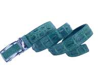 Классический ремень из кожи крокодила, спинная часть темно-зеленый, изумрудный цвет.