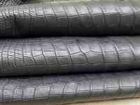 Одежная кожа крокодила, брюшная часть, цвет черный-классический, ширина шкуры – 43см. Натуральная кожа сиамского крокодила, брюхо, кожа высокого качества выделки и окраса, мягкая, тонкая и эластичная- одежная выделка толщина 0,8-0,9мм. Даная кожа идеально подходит для пошива одежды, печаток, сумок, ремней, кошельков и даже некоторой обуви, не всякую обувь можно делать из очень мягкой и тонкой кожи крокодила, фото шкур представлены справочно, форма шкур и оттенок могут отличаться от представленных на фото, пожалуйста свяжитесь с нами для уточнения перед заказом, уверен, мы подберем кожу для вашего проекта.