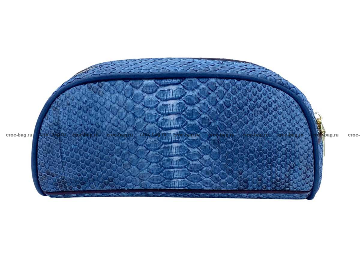 Несессер, косметичка из кожи питона нубук темно-синего цвета
